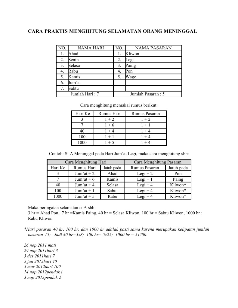 Cara Praktis Menghitung Selamatan Orang Meninggal Pdf